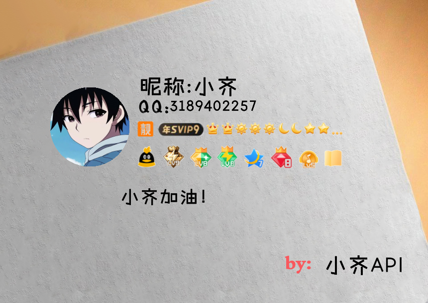 请求示例: https://gh.starrain.fun/api/qqcard_2.php?qq=3189402257&nick=小齐&name=小齐API&msg=小齐加油!